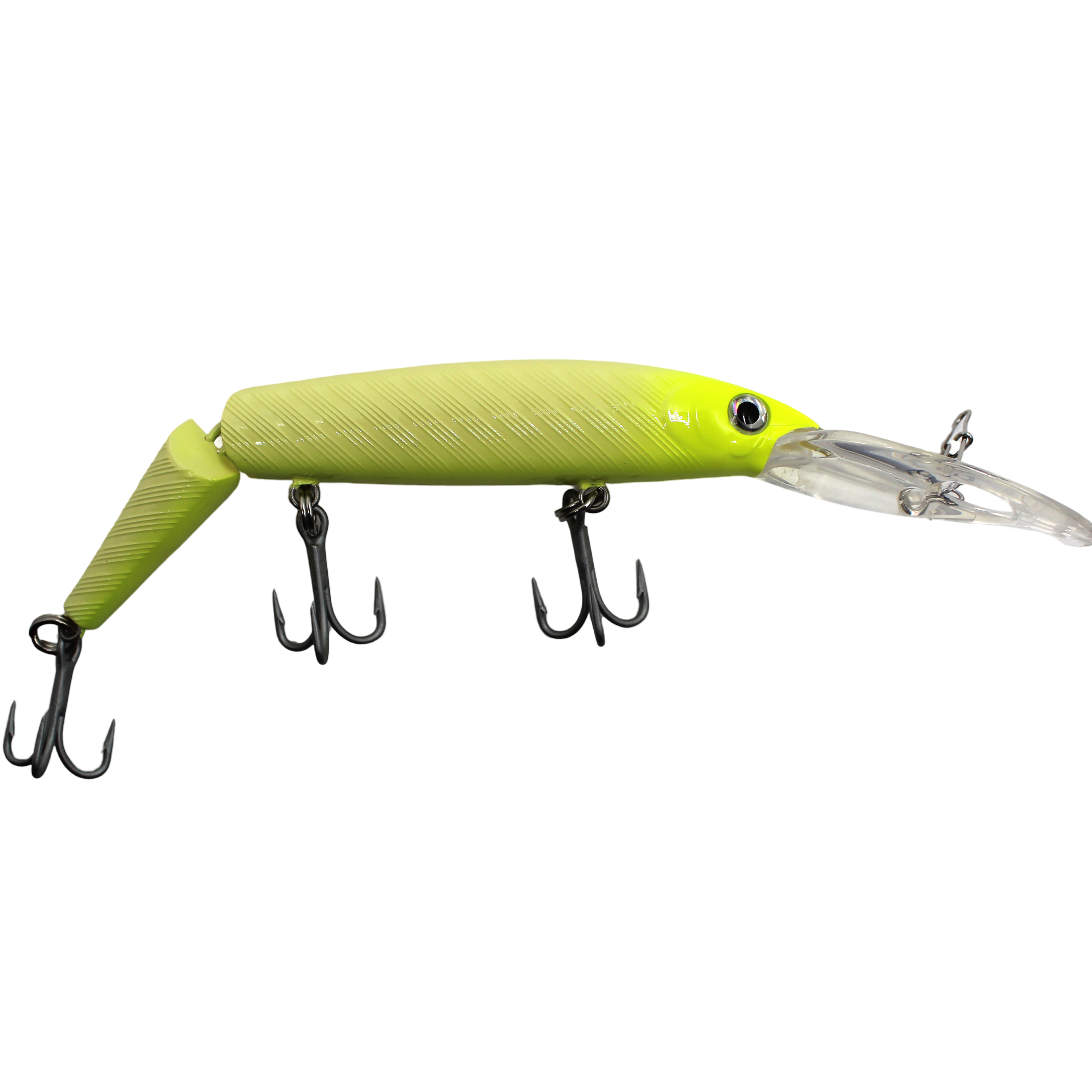 The P-Line Predator is a deep diving, broken back minnow with an action that makes it irresistible to many species of game fish. Trolled at 3mph with 100 feet of line, the P-Line Predator will dive 12 to 13 feet. These lures are catching fish from coast to coast, in both salt and fresh water, under any conditions. Features: One piece mold injection, a single wire running from the bill to the rear hook for added strength, laser finishes on some models, laser glass eyes, 5.5" body, VMC hooks, and two rattle chambers.