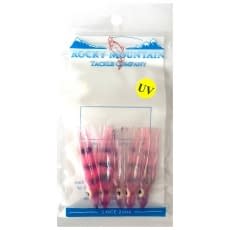 Glow models glow in the dark and U.V. models when placed under U.V. light they emit a blue violet color that fish can’t resist. These 1.5" Rocky Mountain Tackle Signature Squids are handmade using only the finest materials available. We use the highest grade 10lb line and the highest quality red hooks to ensure a secure hook-up each and every time.