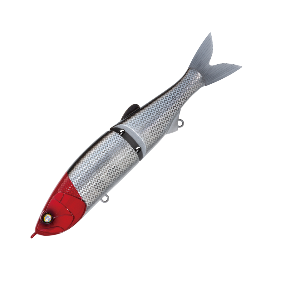 WHIPLASH FACTORY's first jointed lipless minnow. It swims seductively in a wide slalom with a short travel distance during retrieval, and its movement is also transmitted to your hand. With a light twitch, it darts left and right, and with fine continuous operation, it develops a writhing action under the water surface, driving the target crazy. The body thickness is set to 1.5 mm, assuming a strong target with teeth and jaws. The hook is one size larger than the general model of the same type, and the hook-up rate is also improved.